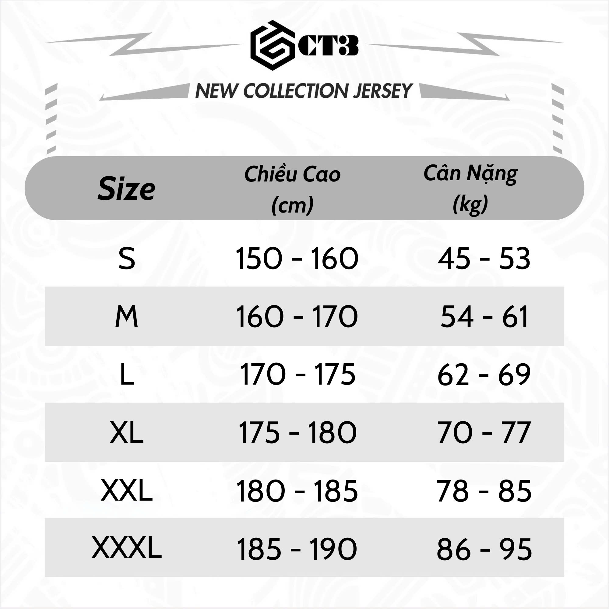 Việc lựa chọn size rất quan trọng, Vì thế Đông Dương Sport gửi bạn bảng size bộ thể thao của CT3-Sport giúp bạn dễ dàng lựa chọn cho mình bộ đồ phù hợp và ưng ý nhất