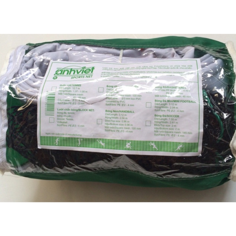 Anh Việt là đơn vị chuyên sản xuất lưới thể thao nổi tiếng trong nước. Chuyên sản xuất lưới của các bộ môn như bóng đá, bóng chuyền, cầu lông, tennis…vv… Với công nghệ hiện đại đạt tiêu chuẩn thi đấu.